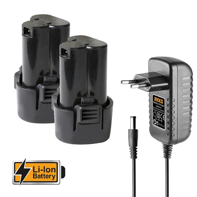 - Στη συσκευασία περιέχονται 1 τεμάχιο φορτιστή 2 ωρών, 2 τεμάχια μπαταρίες 12V Li-ion, 1 τεμάχιο διπλή μύτη 65mm Cr-V και πλαστική βαλίτσα