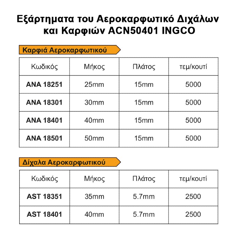 - Επαγγελματικό καρφωτικό αέρος δίχαλων και καρφιών